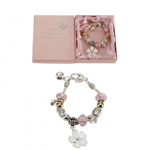 £15.99Amore Silver/Pink Bead antique Charm Bracelet - Flower Girl